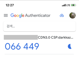모바일 기기에 표시되는 6 자리 숫자를 CDN Customer Portal 의 OTP CODE 입력란에 입력 후 [로그인] 버튼을 클릭 하면 정상적으로 로그인이 진행 됩니다.